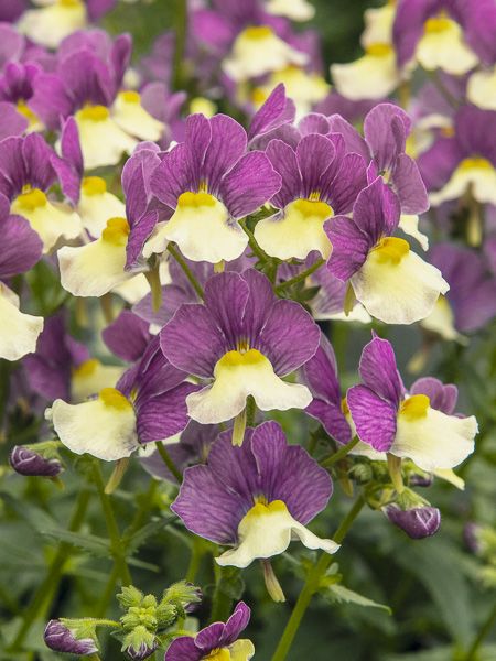 Némésie aux fleurs mauve et jaune crème. Floraison continue du milieu du printemps au début de l'automne