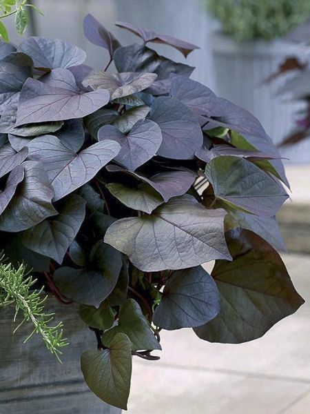 La patate douce est un tubercule très riche en amidon à saveur sucrée et texture farineuse, rappelant la châtaigne. Elle se consomme en légume ou en dessert, toujours cuites à l'eau ou au four. Dans nos réions, elle se cultive en annuelle. Elle est aussi décorative pour ses feuilles et ses fleurs blanches à cœur violet.