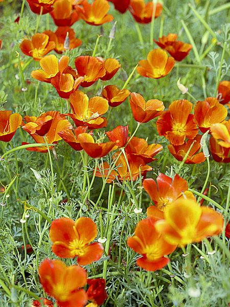 Variété haute de cette annuelle érigée, frêle, à croissance rapide. Feuilles finement découpées vert bleuâtre. Fleurs en coupe, orange feu.