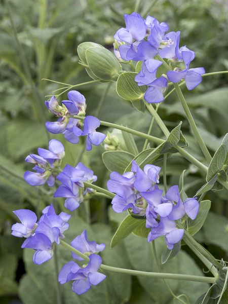 Pois de senteur grimpant ou rampant aux fleurs très parfumées, bleu lavande, tout l'été. Feuillage gris-vert. Vivace de courte durée de vie à cultiver en annuelle en jardinières ou suspensions. Rustique jusqu'à -10°C.