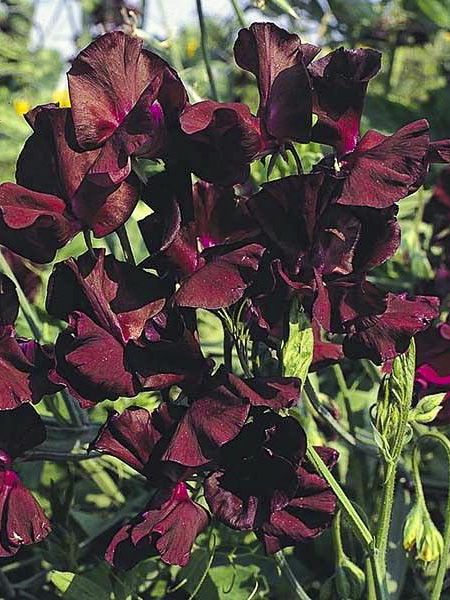 Variété récente de pois de senteur aux grandes fleurs légèrement parfumées, pourpre très sombre. Peut-être cultivée en suspension ou sur un support.