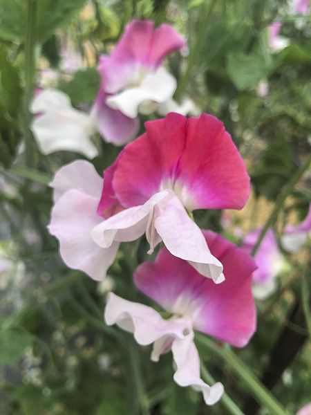 Nouvelle variété de pois de senteur aux grandes fleurs ondulées, très parfumées, rose-rouge intense et blanches. Peut-être cultivée en suspension ou sur un support.