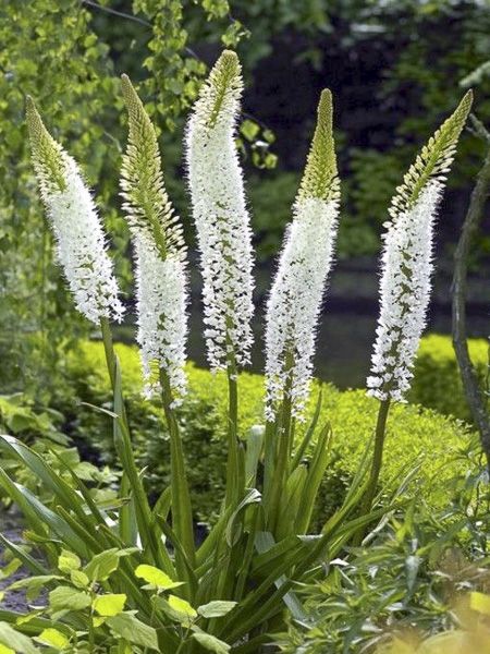 Les quenouilles de Cléopâtre ou lis des steppes sont des vivaces majestueuses avec leur haute hampe bien fournies de fleurs pastels. Leur floraison en juin est magique : un cierge de 1,50 m à 3 m de haut, de couleur jaune à orangée ou blanche. En été, la plante se met en repos. Elle passe l'hiver sous forme d'un pseudo bulbe qui demande de préférence un sol riche et bien drainant. Dans un sol pauvre, la floraison est irrégulière. Plantez-les en plein soleil, dans endroit non venteux, pour éviter le tuteurage, dans un terrain léger, non détrempé en hiver. En cas d'hiver froid et humide, il est préférable de les recouvrir d'un mulch épais et sec, en prenant soin de laisser le collet à l'air libre.