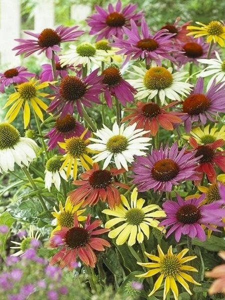 Echninacea à semer offrant des fleurs aux couleurs allant du rouge orangé au jaune ou encore rose à pourpre ou blanc.