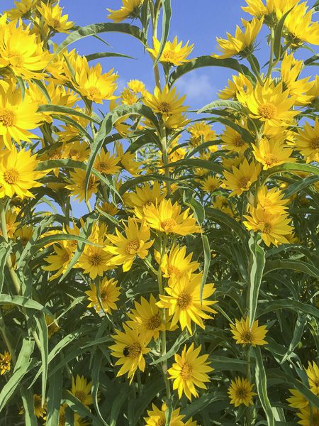 Les Helianthus vivaces sont de hautes plantes aux fleurs de fin d'été, du jaune soufre au jaune d'or, ressemblants à celles des marguerites, qui peuvent culminer jusqu'à 2 mètres selon les variétés. Ils sont solides et vigoureux. Ils ne demandent pas à être tuteurés. Ils apprécient le soleil et une terre riche. À installer en fond de massif.