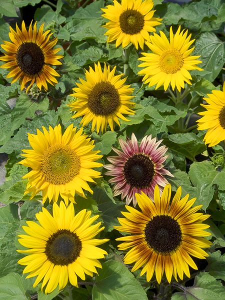 Nain et compact. Fleurs 12-15 cm de diamètre aux chaudes couleurs variant du jaune au pourpre.