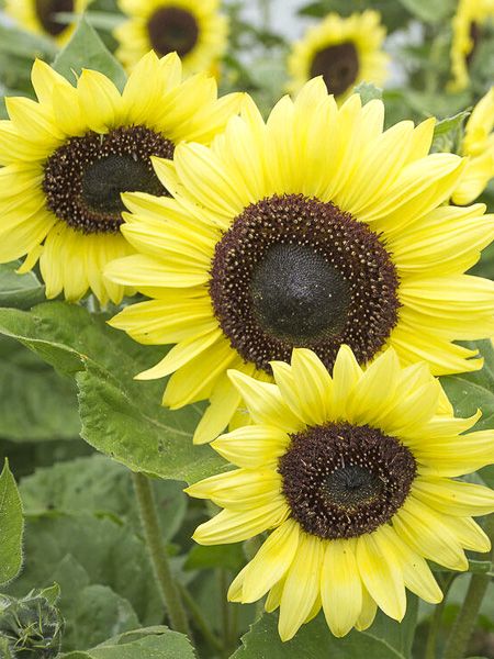 Taille moyenne Feurs de 15 cm de diamètre, jaune pâle à cœur brun-noir.