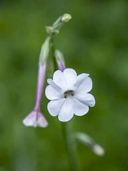 Tabac d'ornement botanique originaire d'Australie aux fleurs à base tubulée, rose pâle, s'évasant en lobes échancrés, blancs.