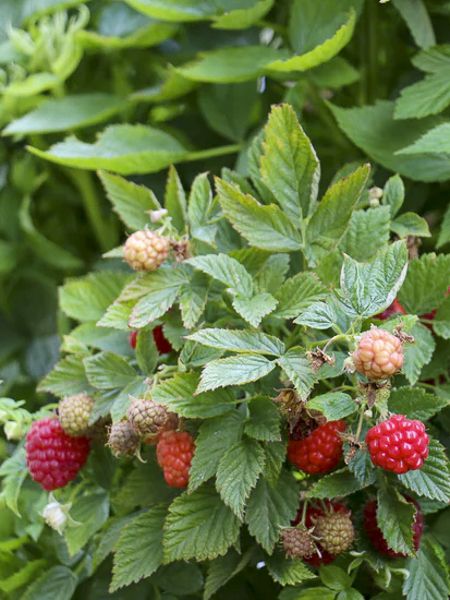 Ronce drageonnante, à racines superficielles.Souche souterraine vivace, traçante ; tiges aériennes bisannuelles. Les tiges de l'année apparaissent au printemps et terminent la saison à l'état semi-ligneux. Elles se dessèchent après fructification. Feuilles composées, 20-30 cm, imparipennées, à 5-7 folioles, dentées. Inflorescence tardive, étagée en panicules lâches, terminales. Fleurs verdâtres, autofertiles. Fruits composés de drupéoles, généralement rouges plus ou moins foncé, parfois jaune ou presque noirs.