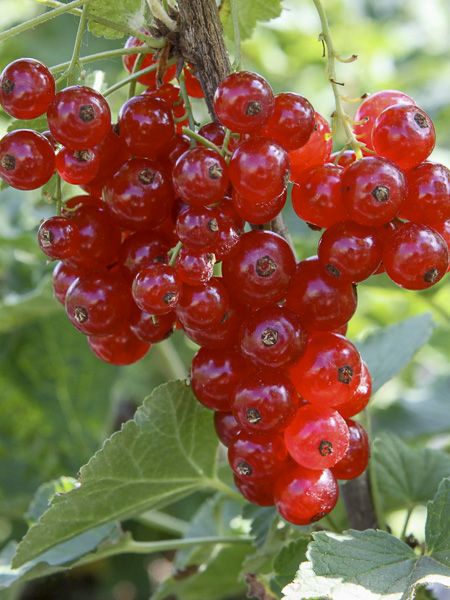 Courtes grappes de fruits rouge clair, gouteux et acidulés. Récolte hâtive. Autofertile, bien productif.