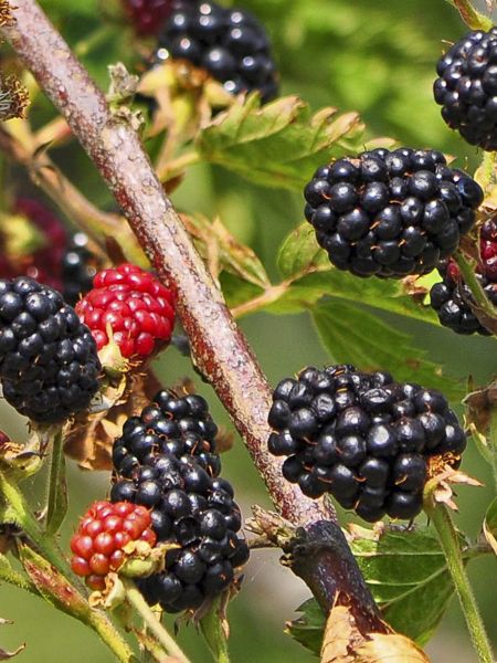 Buissonnant, sans épines. Tout au long de l'été, production de grosses baies fermes, à la saveur aromatique et douce. Très résistant aux maladies.
