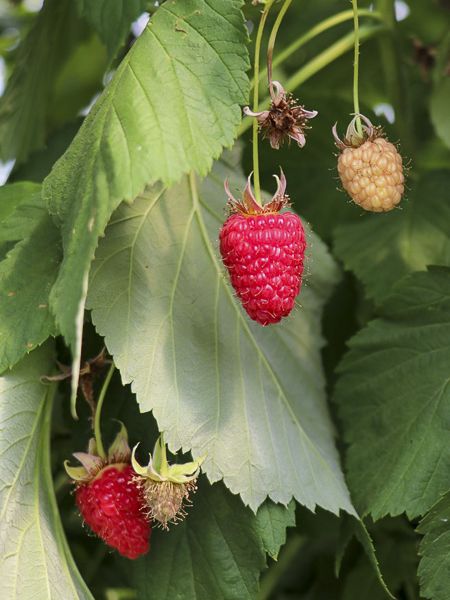 Les framboisiers affectionnent les sols riches, frais mais bien drainés, et ensoleillés. Pour une bonne fructification, n'hésitez pas à enrichir avec du compost à l'automne. Il est bon de tailler à 1 m de hauteur et de supprimer tous les rameaux secs, en mars. Crues ou cuites, les framboises peuvent se déguster en gélée, en confiture, en coulis, en glace, en tarte,en gateau, en vinaigre, en accompagnement d'une viande, en vin, ... On aurait tord de se priver de ce fruit si facile à cuisiner. En plus d'être délicieuses, les framboises sont peu caloriques (38 kcalories pour 100 g), riches en minéraux, notamment en potassium, en magnésium, en calcium et en fer. Elles apportent aussi de la vitamine C et une grande quantité de fibres. Elles ont ausi un pouvoir antioxydant très élevé. Toutefois, comme les framboises s'abiment vite, il faut les consommer ou les transformer rapidement après la cueillette pour bénéficier de toutes leurs qualités.