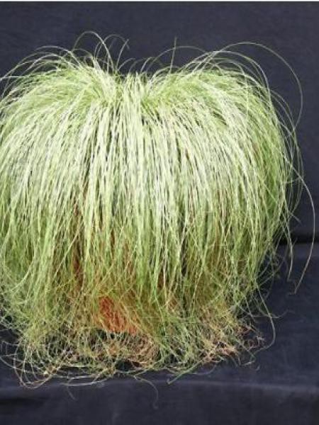 Vivace formant une touffe compacte, arrondie, persistante. Feuilles linéaires, vert vif, de 15-35 cm de long, vert-bleu dessus et pruineuses à la naissance. Tout l'été, épillets blancs, virant au pourpre sombre, réunis en panicules de 1-3 cm de long.