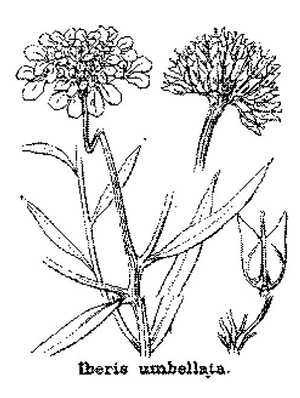 — Plante annuelle, glabre ; tige de 20-60 cm, robuste, à rameaux épais, ascendants ; feuilles radicales et inférieures oblongues ou lancéolées, dentées, les moyennes et les supérieures linéaires-lancéolées, entières ; fleurs roses ou purpurines, grandes ; grappe fructifère courte, en corymbe dense, à pédicelles dressés ; silicules ovales-arrondies, ailées dès la base, non rétrécies au sommet, à échancrure profonde, à lobes dressés, acuminés ; style dépassant un peu les lobes. Côteaux rocailleux et boisés, dans les Alpes-Maritimes et le Var oriental. — Europe méridionale, de l'Espagne à l'Albanie. = Mai-octobre. — Plante souvent cultivée dans les parterres.