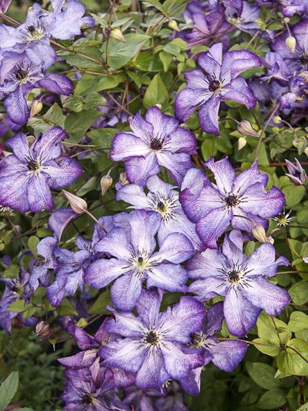 Les clématites sont cultivées pour leur floraison généreuse, souvent suivie de fruits plumeux décoratifs, gris argenté. Certaines, comme Clematis recta sont odorantes. Utilisez les formes grimpantes pour garnir une pergola, un treillage, un arceau, une tonnelle ou un mur, voire pour habiller les branches d'un grand arbuste ou d'un petit arbre. Cultivez les espèces herbacées dans les massifs. Les clématites ont été réparties ici en trois groupes, en fonction de leurs exigences de culture. GROUPE 1 Espèces à floraison précoce. Ces clématites portent des fleurs en janvier ou en mars, sur les pousses de l'année précédente. Elles se plaisent en situation abritée mais ensoleillée, dans un sol bien drainé. Feuilles vert moyen, lustrées, persistantes ou caduques, divisées en trois folioles lancéolées de 9 à 12 cm de long, ou entières, oblongues et finement découpées, de 5 cm de long Fleurs simples, en clochette ouverte, de 2 à 5cm de long, ou aplatie, de 4 à 5 cm de diamètre. Plantes rustiques. Clematis alpina, Clematis macropetala et leurs cultivars portent des fleurs en avril sur les pousses de l'année précédente, et parfois en juillet sur les pousses de l'année. Clematis alpina et ses cultivars résistent en situation froide et ventée. Les feuilles, caduques, de 3 à 5 cm de long, vert pâle à moyen, sont composées de trois à cinq folioles lancéolées à oblongues, dentées. Fleurs de 3 à 7 cm de diamètre, simples, semi-doubles ou doubles, en clochette plus ou moins ouverte. Fruits plumeux, décoratifs, de l'été à l'automne. Bonne rusticité. Clematis montana et ses cultivars fleurissent fin mai sur les pousses de l'année précédente. Ce sont des plantes grimpantes, très vigoureuses, caduques, précieuses pour habiller un grand arbre ou un mur disgracieux. Les feuilles, vert moyen à pourpré, de S à 8 cm de long, sont composées de trois folioles lancéolées à l'extrémité pointue. Fleurs presque plates, généralement simples, de 5 à 7 cm de diamètre. Très rustiques. GROUPE 2 Cultivars précoces à grandes fleurs. Ces clématites fleurissent entre mai et juillet, sur les pousses latérales des tiges de l'année précédente, puis en août-septembre, à l'extrémité des pousses de l'année. Les feuilles, caduques, vert pâle à vert moyen, sont composées de trois folioles ovales à lancéolées de 10 à 15 cm de long, ou sont simples et ovales, mesurant de 7 à 10 cm de long. Les fleurs sont dressées, simples, semi-doubles ou doubles, le plus souvent en coupe large, de 10 à 20 cm de diamètre. Ces plantes sont assez rustiques, les hivers rigoureux peuvent compromettre leur précocité. GROUPE 3 Cultivars tardifs à grandes fleurs. Ces clématites fleurissent de juillet à septembre sur les pousses de l'année. Les feuilles, caduques, vert pâle à foncé, sont composées de trois folioles ovales à lancéolées de 10 à 15cm de long, ou sont simples et ovales, mesurant de 7 à 10 cm de long. Les fleurs, simples, ouvertes vers l'extérieur, forment une coupe large, de 7 à 15 cm de diamètre. Bonne rusticité. Espèces et cultivars tardifs à petites fleurs. Ces clématites fleurissent de juin à octobre sur les pousses de l'année. Les feuilles, de 2 à 15 cm de long, caduques, vert pâle à foncé ou gris vert, sont pennées ou bipennées, avec des folioles lancéolées, ou simples et lancéolées. Les fleurs, de 1 à 10 cm de diamètre, sont simples ou doubles, en coupe large, en étoile, campanulées, en forme de tulipe ou tubulées. Très bonne rusticité. Espèces et cultivars herbacés. Ces clématites fleurissent de juillet à octobre sur les pousses de l'année. On les plante dans les massifs de vivaces. Les feuilles, de 3 à 15 cm de long, vert moyen à foncé ou vert grisâtre, sont entières et lancéolées, ovales ou cordiformes, parfois avec le bord denté. Certaines sont composées de trois à cinq folioles lancéolées à ovales de 3 à 8 cm de long. Les fleurs sont simples, étalées, mesurant de 1 à 2 cm de diamètre, ou encore campanulées ou tubulées, de 1 à 4cm de long.