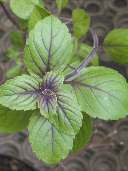 Cette plante compte plus de 150 espèces. An Asie, elle est considérée comme une plante vivace. Sous nos latitudes, c'est une annuelle qu'il est préférable de cultiver en pot puisqu'elle ne résiste pas sous des températures inférieures à 10°C. Avant d'être cette plante aromatique utilisée en cuisine, elle était surtout considérée comme une plante sacrée pour le bouddhisme (Inde, Népal), magique (Afrique) ou liée à la sorcellerie en Europe. Elle a aussi été utilisée dans des rites funéraires en Perse, en Malaisie ou dans l'Egypte antique. Quasi inconnue dans la cuisine française il y a 10 ans, elle fait maintenant partie de nos aromatiques de base. Depuis, de nombreux cultivars ont fait leur apparition. Ellle est intégrée dans de nombreuses recettes italienne et asiatique. Le basilic se cultive en pot sous nos latitudes. En pleine terre, en dessous de 10°C, il faut adopter quelques précautions de culture. Le basilic aime les sols frais, riches et bien drainés, les expositions abritées et très ensoleillées (minimum 5 h de soleil par jour). Il est conseillé de pincer les sommités des tiges pour éviter la formation des fleurs et favoriser la production de feuilles. Le basilic est une bonne plante médicinale. Elle s'utilise en infusion, en poudre, en cataplasme, en vaporisation. Elle donne aussi une huille essentielle aux propriétés antispasmodique, revigorante, vitalisante. C'est aussi un tonique du système nerveux et un tonique digestif ainsi qu'un anti-inflammatoire, un anti-douleur et un antiviral. Toutefois cette huile essentielle est très puissante, il faut donc l'utiliser avec précautions et en suivant les recommandations d'une personne référente en la matière. Ne surtout pas l'utiliser en usage interne. Ocimum basilicum n'est pas connu pour déclencher d'allergies. A privilégier pour la conception d'un jardin sans allergie.