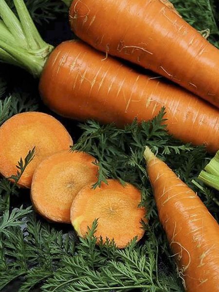 Variété de carotte à racine longue, conique, orange. Chair orangée, bien sucrée. Bien productive.
