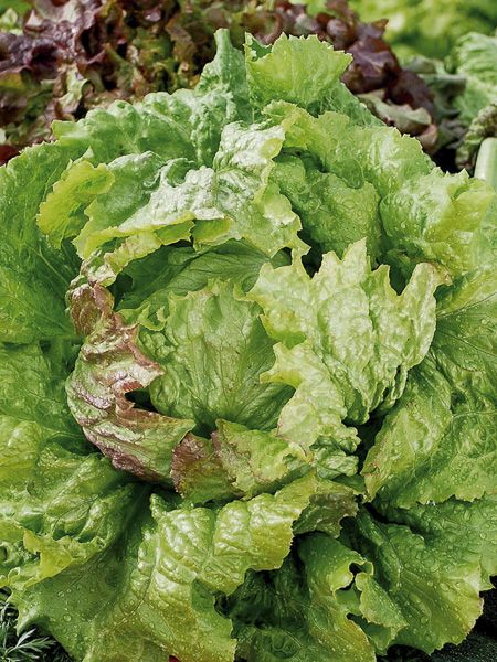 Variété traditionnelle de laitue légèrement pommée. Feuilles croquantes vert tendre, bordées de rouge. Tolérante à la chaleur. Lente à monter à graines.