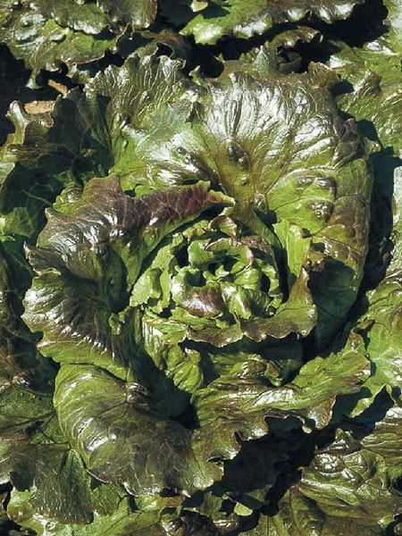 Laitue à grosse et lourde pomme. Feuilles légèrement cloquées, vert foncé brillant teinté de rouge. Très rustique, résistante à la montée à graines.