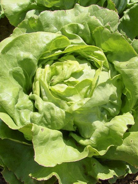 Batavia d'automne et d'hiver. Feuilles croquantes et savoureuses, vert tendre ponctuées de taches rouge sang. Tardive, résistante aux maladies.