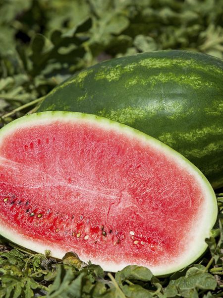 Précoce. Fruits ovales de 10-12 kg, vert clair marbré de vert sombre, à chair rouge vif, très sucrée et bien juteuse. Bien résistante aux maladies.