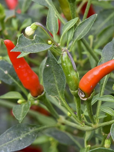 Variété naine de piment fort, produisant des petites gousses dressées et minces, vertes puis rouges à maturité, à saveur très piquante. Bien adaptés pour la culture en pot.
