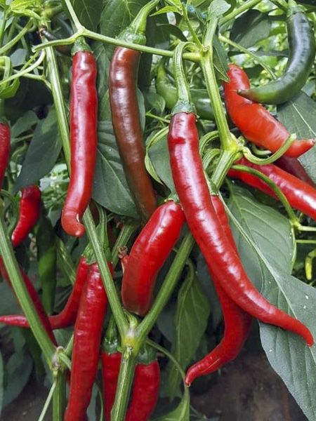 Variété d'origine italienne de type piment de Cayenne produisant des gousses minces, d'environ 15 cm de long, vertes puis rouges à maturité, à saveur très piquante.