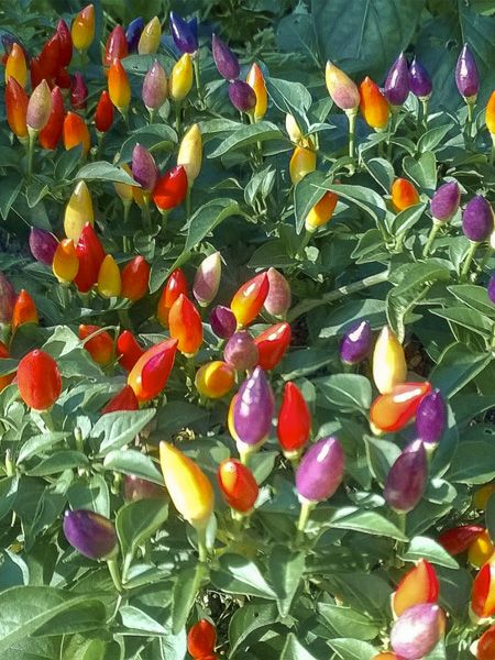 Variété de piment moyennement fort. Très ornemental avec son port compact se couvrant de petits fruits dressés passant du violet au jaune, puis à l'orange, enfin au rouge à maturité. Bien adapté pour la culture en pot.