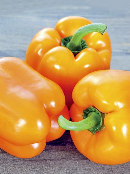 Variété naine de poivron aux fruits carrés, orangés. Chair croquante, douce et savoureuse. A consommer crus, cuits, farcis ou grillés.