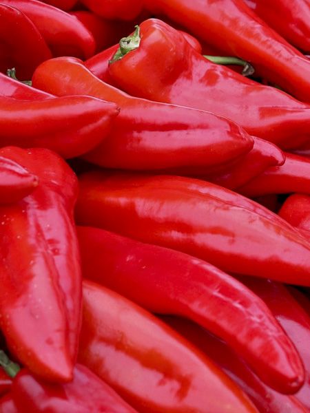 Longs fruits en forme de corne, rouge à maturité. Chair savoureuse. Très bon rendement.