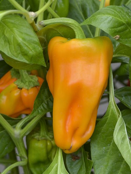 Variété de poivrons de type antillais, aux fruits jaune orangé allongés, un peu fripés et difformes. Chair très fine à saveur sucrée délicatement poivrée et piquante.