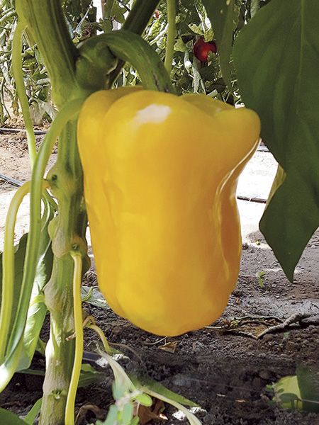 Poivron aux gros fruits carrés, de 300 à 400 grammes, verts, jaune à maturité. Chair épaisse. Saveur douce et parfumée. Vigoureux, tolérant aux virus.