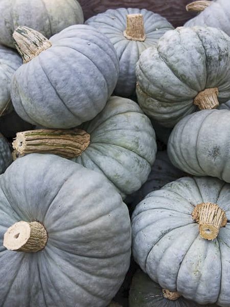 Fruits moyens de 2 à 3 kg, à épiderme gris bleuté, à chair épaisse, jaune orangé, parfumée. Conservation de 5 à 8 mois.