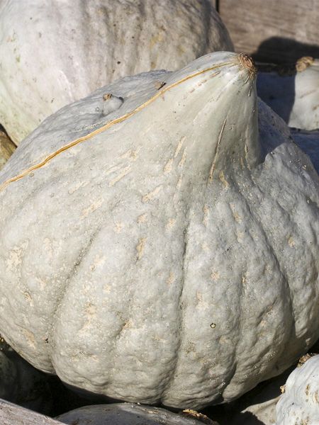 Fruits moyens de 2 à 3 kg, à épiderme gris bleuté, à chair épaisse, jaune orangé, parfumée. Conservation de 5 à 8 mois.