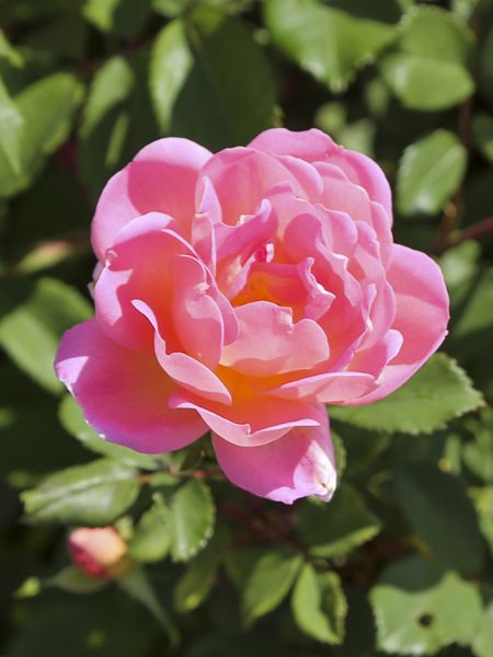 Paysager compact. Bouquets légers de 2-7 fleurs à 20 pétales, rose lumineux, nuancé de saumon, sans discontinuer de juin jusqu'aux gelées. Feuillage dense, vert foncé, les jeunes feuilles légèrement teintées de bronze. Excellente résistance aux maladies.
