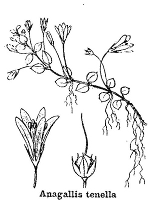— Plante vivace de 5-12 cm, glabre, à racine grêle ; tiges filiformes-quadrangulaires, couchées-radicantes à la base, redressées au sommet ; feuilles opposées, un peu pétiolées, petites, suborbiculaires, mucronulées, non ponctuées ; fleurs d'un rose tendre à veines plus foncées, solitaires sur des pédoncules opposés, capillaires, 2-3 fois plus longs que les feuilles, à la fin recourbés ; calice à lobes lancéolés-linéaires acuminés, à bords non membraneux ; corolle en cloche, 2-3 fois plus longue que le calice, à lobes oblongs-obtus ou émarginés, non ciliés-glanduleux ; capsule petite, environ de la longueur du calice. Prairies marécageuses ou tourbeuses, dans presque toute la France. — Europe occidentale, jusque dans l'Allemagne occidentale et le Tyrol ; Crète ; Algérie et Maroc. = Mai-septembre.