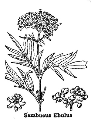 — Plante vivace atteignant ou dépassant 1 mètre, glabre ou glabrescente, fétide, à souche rampante ; tige herbacée, annuelle, robuste, sillonnée, pleine de moelle blanche, simple ou peu rameuse ; feuilles à 7-11 folioles à peine pétiolulées, longuement lancéolées-acuminées, dentées ; stipules foliacées, ovales, inégales ; fleurs blanches ou rougeâtres en dehors, odorantes, disposées en large corymbe plan, à 3 branches principales ; corolle à lobes ovales-aigus ; anthères rouges ou violacées ; baies noires à la maturité. Terrains incultes frais, surtout argilo-calcaires, dans toute la France et en Corse. — Europe ; Asie occidentale, jusqu'en Perse ; Afrique septentrionale. = Fl. juin-août, fr. septembre-octobre. — Plante envahissante et nuisible ; les baies servent fréquemment à colorer les vins et sont purgatives.