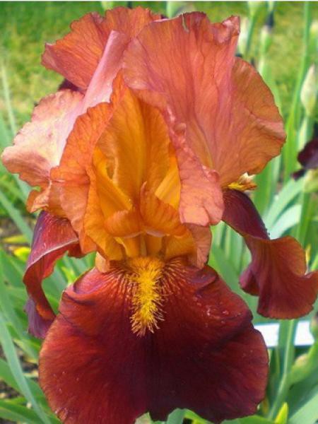 Vivace à feuilles ovales à cordiformes, légèrement ondulées, profondément veinées, fines, brillantes, vert sombre, 20-30 cm. Hampes feuillues de 80 cm, de fleurs en clochettes, rose pourpré rayé de blanc à l'intérieur.