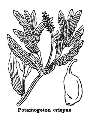 — Plante vivace, glabre, à tiges rameuses, comprimées ; feuilles linéaires-oblon-gues, larges de 4-10 mm, ondulées-crispées ou denticulées, à nervures secondaires écartées, réticulées-veinées, sessiles, toutes submergées membraneuses ; stipules courtes ; pédoncule fructifère non renflé ; épi fructifère oblong, long de 10-15 mm, lâche ; carpelles assez petites (2 1/2 sur 2 mm), ovoïdes-comprimés, à bord obtus, terminés par un bec aigu et arqué presque aussi long qu'eux. Mares, étangs, lacs, rivières, dans toute la France. — Presque tout le globe. = Juin-septembre. — Très abondant dans les mares, il est souvent utilisé comme engrais.