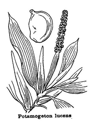 — Plante vivace, glabre, à tiges rameuses, robustes, cylindriques ; feuilles oblongues-lancéolées, mucronées, larges de 2 à 6 cm, ondulées et rudes aux bords, atténuées en court pétiole, toutes submergées, membraneuses ; stipules allongées ; pédoncules renflés surtout dans le haut, bien plus gros que la tige ; épi fructifère long de 4-6 mm, cylindrique, assez compact ; carpelles gros (3 1/2 sur 2 1/4 mm), ovoïdes renflés, un peu comprimés, à bord obtus, à bec très court et obtus. Lacs, marais, rivières, surtout des terrains calcaires, dans presque toute la France. — Europe ; Asie ; Afrique et Amérique boréales. = Juin-septembre.