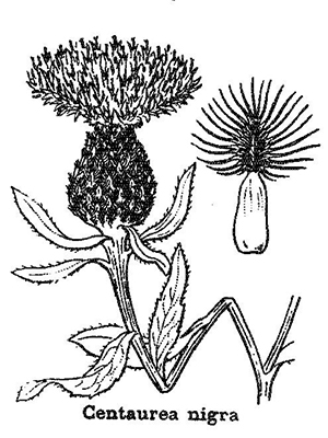 — Plante vivace de 3-8 dm, dressée, à rameaux épaissis sous les capitules ; feuilles dentées ou presque entières, sessiles, les inférieures rétrécies en pétiole ; involucre ovoïde, à folioles strictement cachées par les appendices, ceux-ci foncés, bruns ou noirs, dressés, longuement ciliés-pectinés à cils réguliers 2-3 fois plus longs que la largeur de l'appendice ; akènes presque tous couronnés de très petites cils paléiformes ; fleurs conformes, non rayonnantes, purpurines. Varie à involucre gros, globuleux, noir, à tige courte et moins rameuse (C. obscura Jord.) et à capitules petites avec les folioles lâches plus étroites, non entièrement cachées par les appendices (C. debeauxii Godr.). Bois des terrains siliceux dans toute la France. — Europe occidentale et méridionale. = Juillet-septembre.