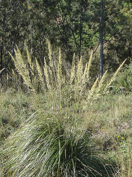 Graminée imposante formant une touffe dense, persistante. Nombreuses et longues feuilles linéaires, coriaces, fines, retombantes. Culminant à plus de 2 m, inflorescences en longues panicules de fleurs blanchâtre. Rusticité jusqu'à -10°C.
