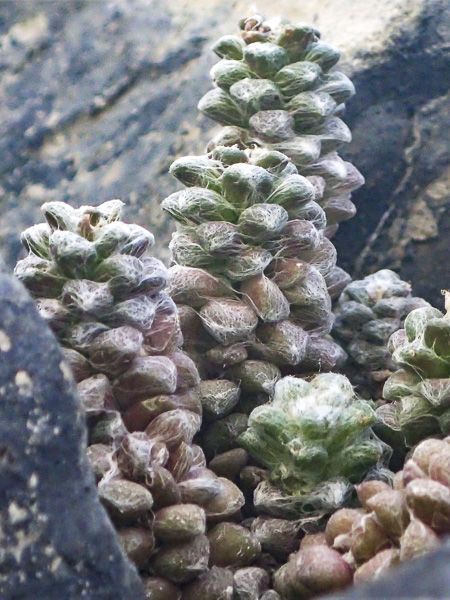 Succulente vivace formant de petites colonnes aux feuilles charnues, triangulaires, couvertes de soies blanches. En été, fleurs de 3 cm de diamètre, roses, à 5 pétales. Ne pas exposer au gel.