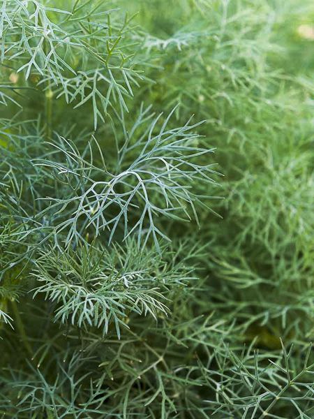 Variété très compacte de cette plante aromatique annuelle à feuilles finement divisées, bleu-vert. Ombelles aplaties de minuscules fleurs jaunes.