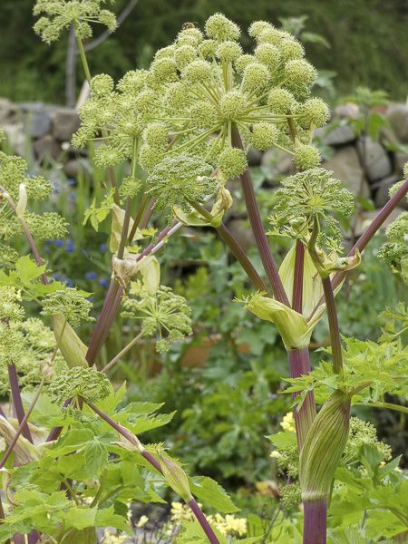 Connue pour ses pétioles consommés en fruits confits, langélique est également une plante majestueuse par son port, lodeur doucereuse quelle dégage et ses fruits au goût danis que lon peut croquer. Elle se comporte parfois en bisannuelle, il est préférable de la laisser se ressemer