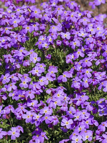 Rien de plus classique que les aubriètes, mais leur coussin de fleurs en fait une vivace très prisée et facile à vivre en bordure de massif, en rocaille ou sur un muret. En plus, aucun problème en terre calcaire. Une exposition ensoleillée et un sol drainant lui conviennent, en supprimant les fleurs fanées vous provoquez une floraison dautomne.