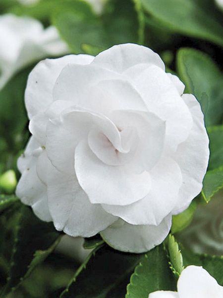Variété d'impatience au port compact et bien ramifié. Ses fleurs sont doubles, blanc pur.
