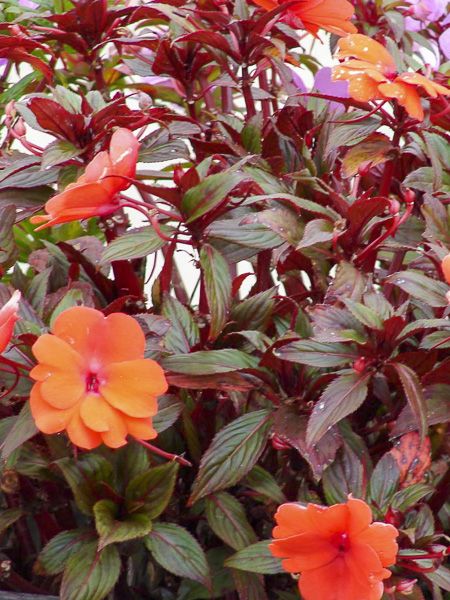 Balsamine, Impatience 'Orange Bronze Leaf' Impatiens hawkeri 'Orange Bronze Leaf'