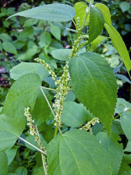 Grande vivace de la famille des orties, aux feuilles décoratives, non urticantes, simples, à bord dentés, vert acide. Elle produit de discrets épis de petites fleurs blanc verdâtre.
