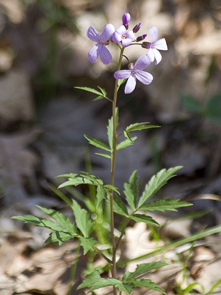 Herbacée. Feuilles basales pennatiséquées, 5-7 folioles dentées, feuilles supérieures simples, lancéolées. Fleurs rose pâle. Bulbilles à l'aisselle des feuilles.